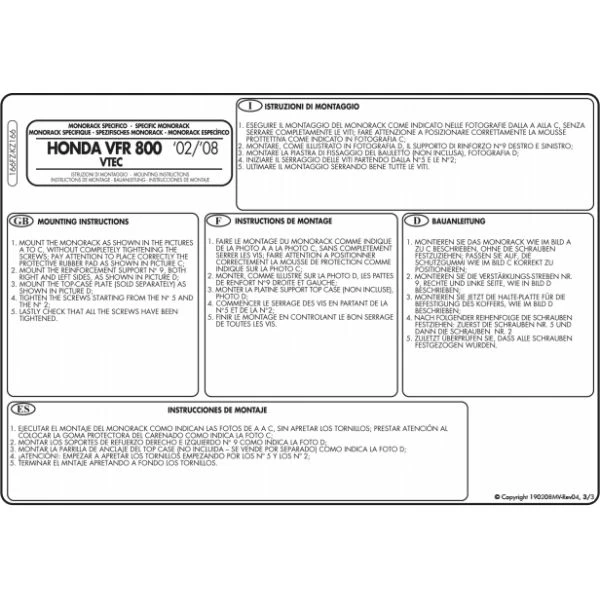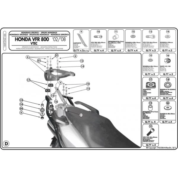 GIVI’s 166FZ Monorack Sidearms are made specifically for Honda VFR800 Interceptor (2002-2011).
