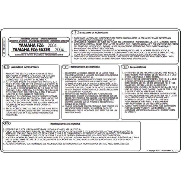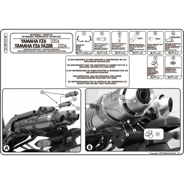 Givi 351Kit Mounting Kit For PL351 Pannier Holder Or T351 Saddle Bag Holder Yamaha FZ6