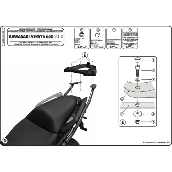 GIVI’s 451FZ Monorack Arms are made specifically for Kawasaki Versys 650 (2010-2014).