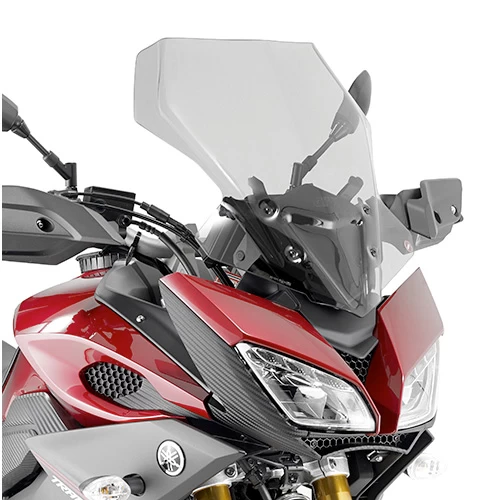 The Givi D2122S windscreen for Yamaha FJ-09 provides a more enhanced aesthetic and improved riding experience with additional protection from wind blast, bugs and other debris. Durable acrylic construction utilizes original mounting locations for a straightforward installation without drilling, cutting or any other permanent modifications. Make the cockpit of your Yamaha FJ-09 a more comfortable place to put on the miles with the D2122S windscreen from Givi.