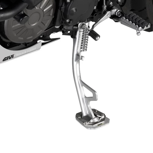Givi’s ES2119 Specific support in aluminum and stainless steel to widen the surface support area of the original side stand.