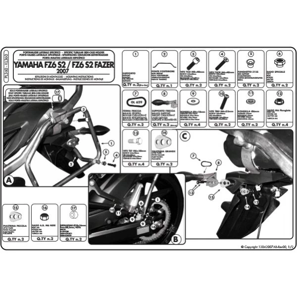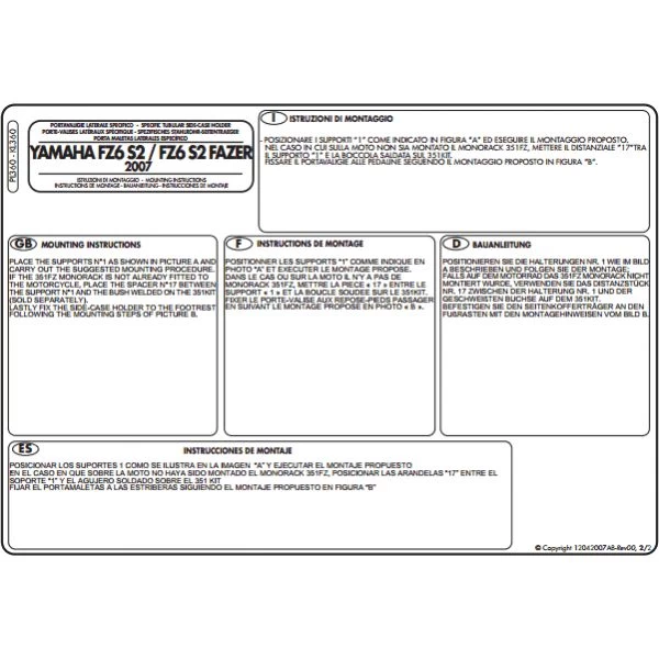 GIVI PL360 Pannier Holder is a bike-specific tubular side case holder to fit Yamaha FZ6 S2 and 600 Fazer S2. The side case holder is compatible with all models in the GIVI Monokey Side Case range except the GIVI V35 Monokey. All parts needed to mount the side case holder are included. Please not the PL360 Pannier Holder must be mounted in conjunction with GIVI 351FZ Monorack arms or the kit below: