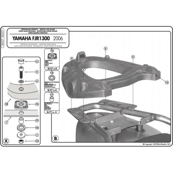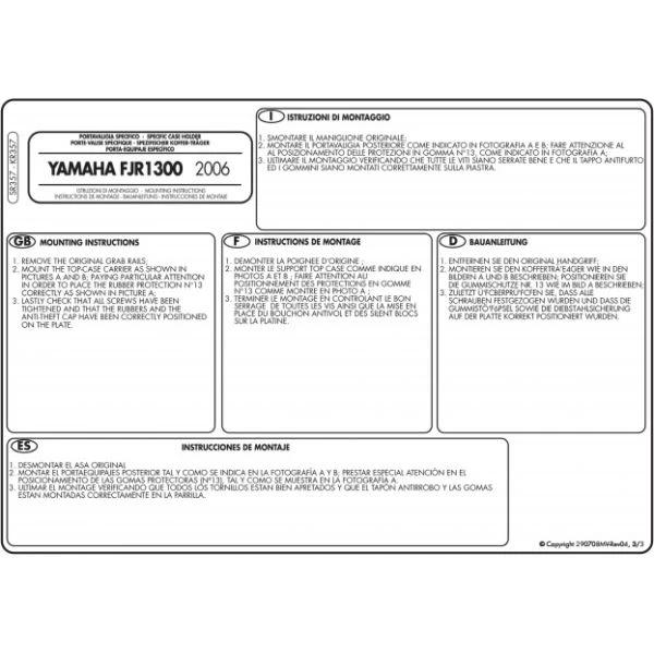Givi’s SR357 Topcase Rack is made specifically for Yamaha FJR1300 (2006-current) to fit Givi Monokey Topcases.