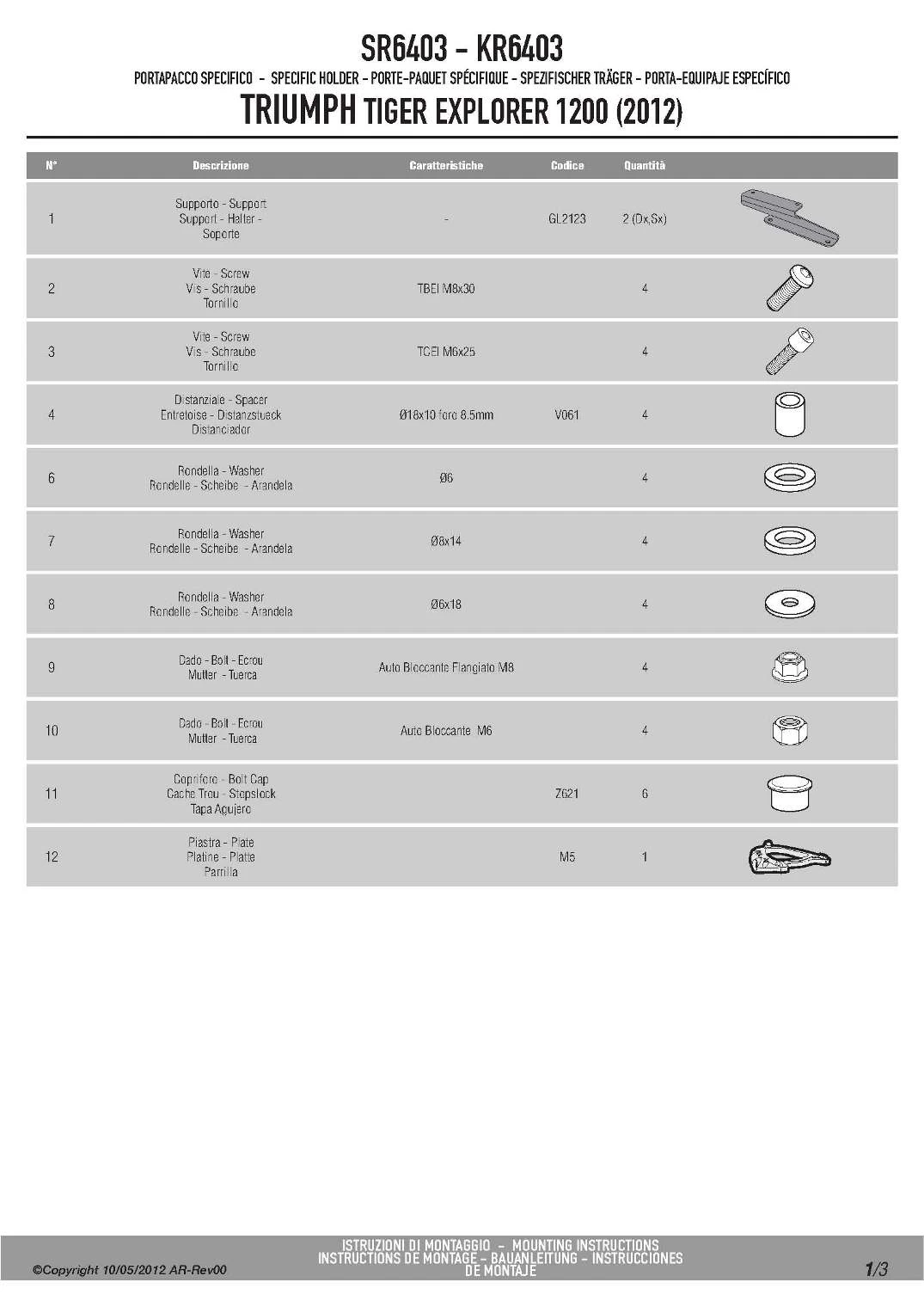 The kit is designed to take GIVI Monokey Top Boxes only. All parts needed to mount the GIVI SR6403 Rear Plate are included. Installs using simple hand tools. Monokey Plate M5 in nylon included.