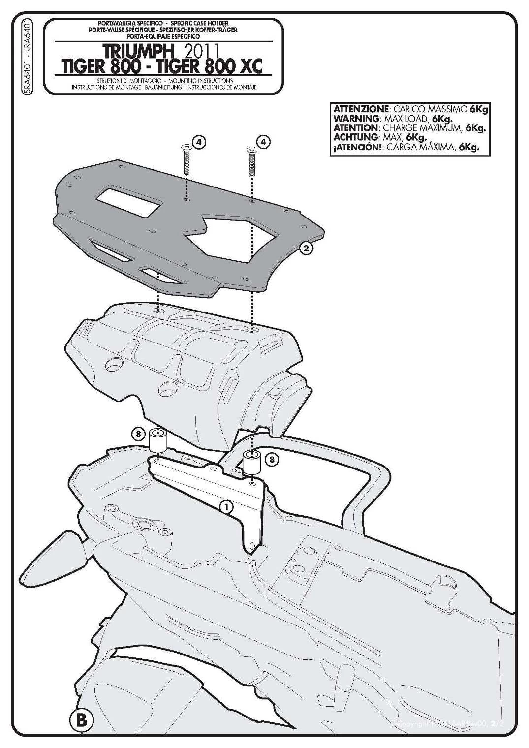 GIVI SRA6401 Rear Plate is a bike specific aluminum rear plate kit for Triumph Tiger 800 and Tiger 800 XC, The kit is designed to take GIVI Monokey Top Boxes only. All parts needed to mount the GIVI SRA6401 Aluminium Rear Plate are included. Maximum load allowed 6 kg. Please note that neither the Givi stop light kit nor the Givi remote control device can be used with this plate.