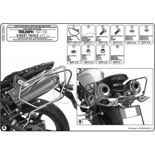 Givi TE705 Easylock Saddlebag Supports For Triumph Street Triple 675 ’07-’11
